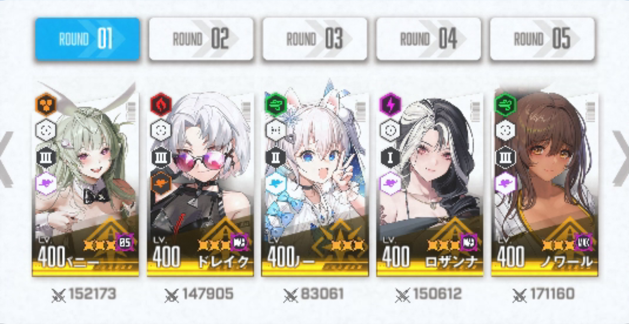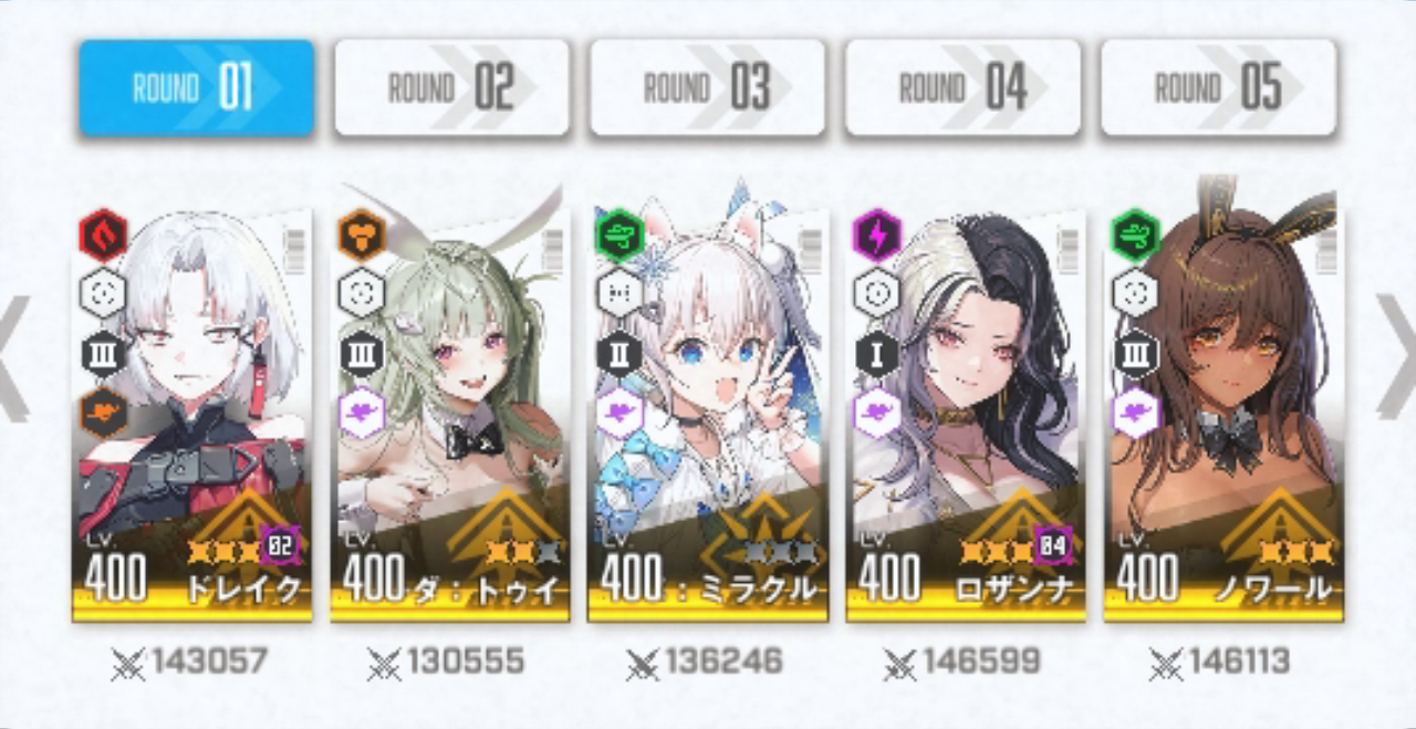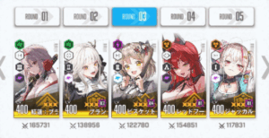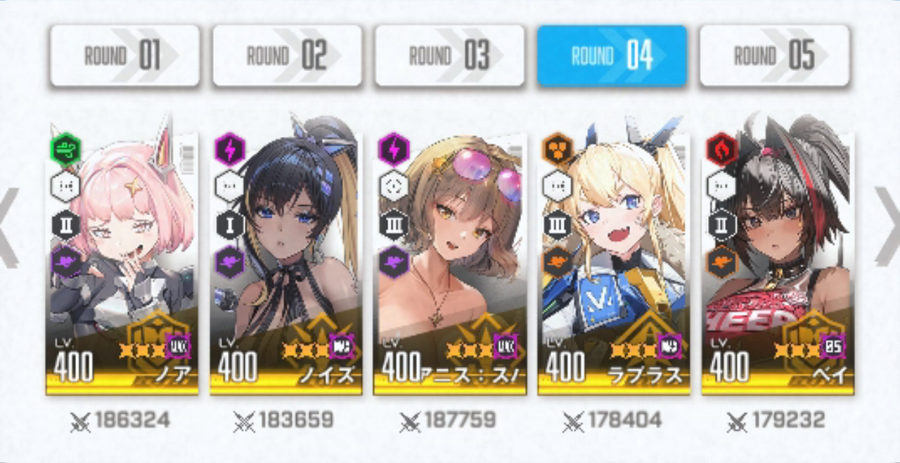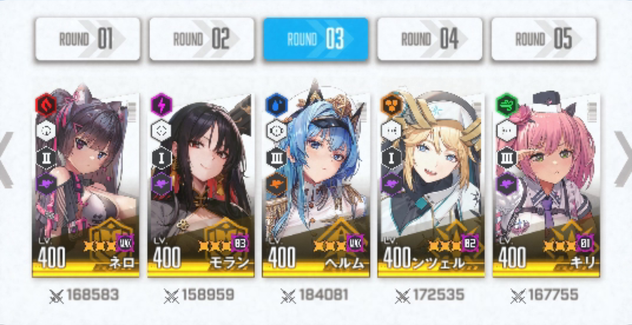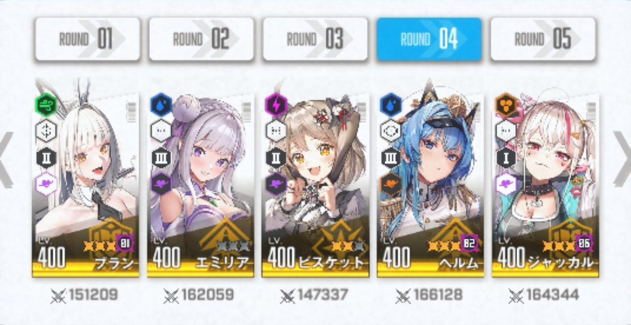 今まで私の部隊には装備未強化キャラが複数体いる状態で参加していましたが・・今回は装備を5段階まで(オバロ状態)強化出来ているキャラだけで参加しています。ただ・・一般的に普及している強編成はキャラを所持していなかったり、そのキャラが無凸未強化という理由で私は使っていません。