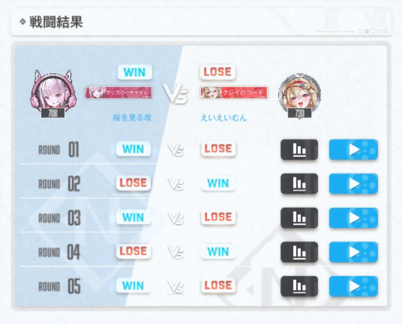 詳細な結果はこんな感じです。前回「チーム別リーグ戦」を突破した時は勝ってる部隊と負けてる部隊がハッキリしていたんですが、今回は良くも悪くも偏っていません。「紅蓮」部隊のみ全勝か・・
