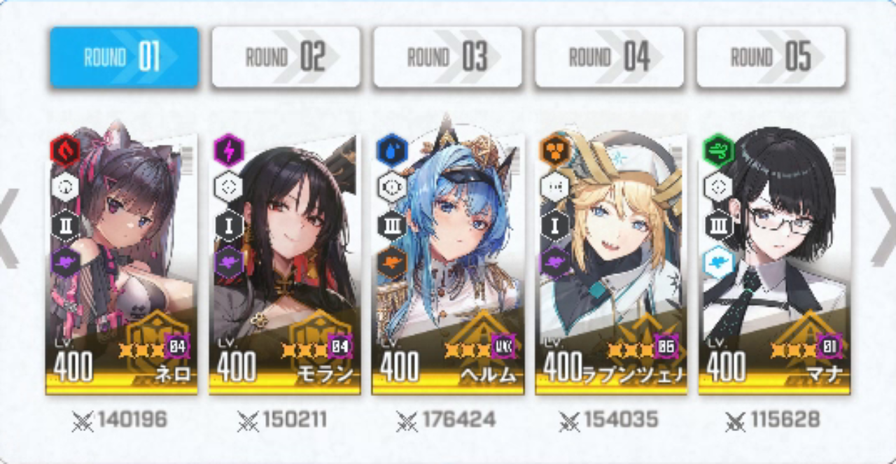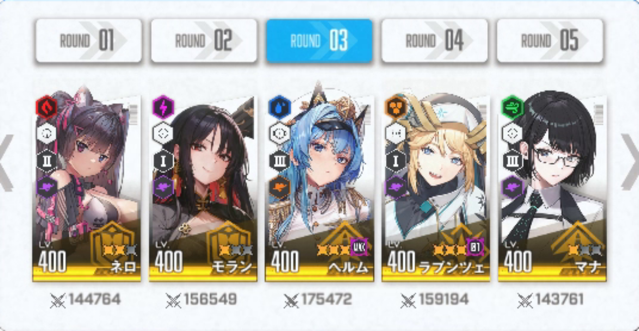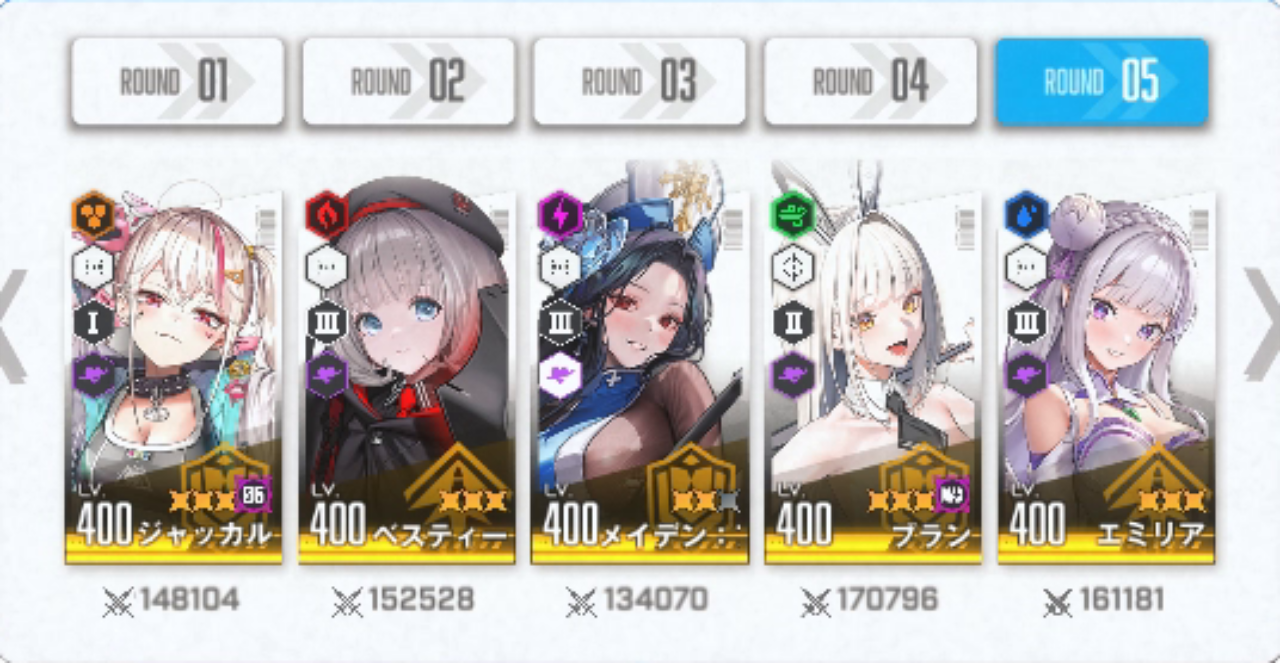 今回の私の編成は前回と何も変わっていないので「新ベスティー」が加わった今となっては前回以上の結果にはならないはずです。今回は「新ベスティー」の火力がどれくらいのものなのか正確にデータを収集するための「チャンピオンアリーナ」だと割り切っています。まぁ今も急ピッチで「新ベス」は育成中ですが・・
