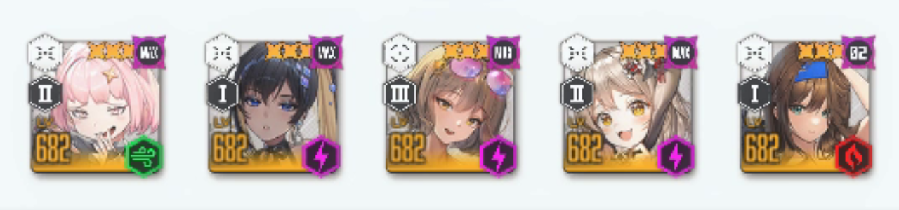 「第2部隊」は先頭を「ノア」「ノイズ」の並びにしていますが、普通は「ノイズ」「ノア」にしている場合が多く、「バーストIII」も「水着アニス」ではなく「シンデレラ」を使うのが一般的です。