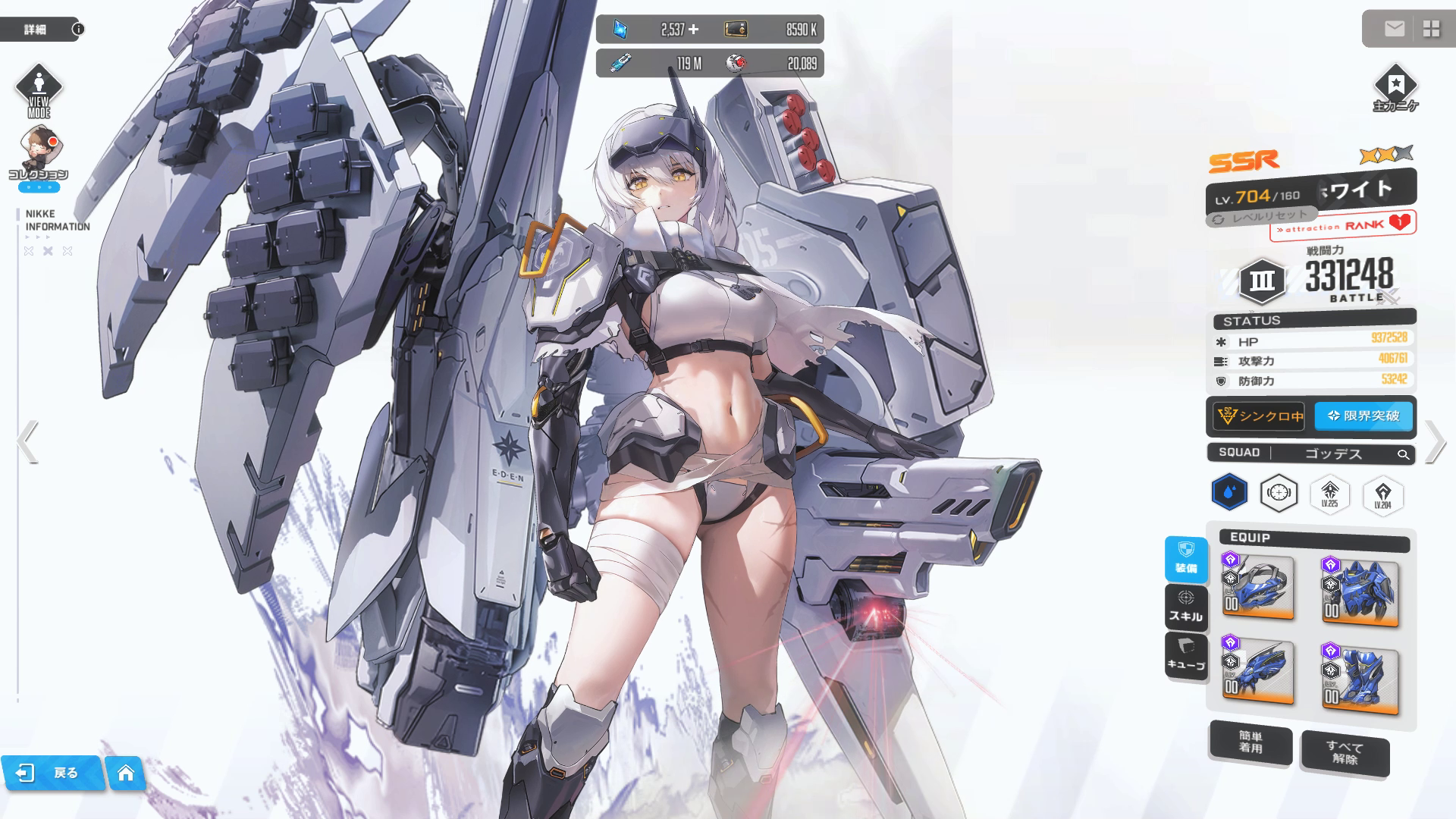左側の真ん中が空いている箇所は、最初「パーツ」を使いつつ何か埋めようと考えていたんですが、やれどもやれども何も埋まらないので「カスタムモジュール」を使って本腰モードに移行しました。