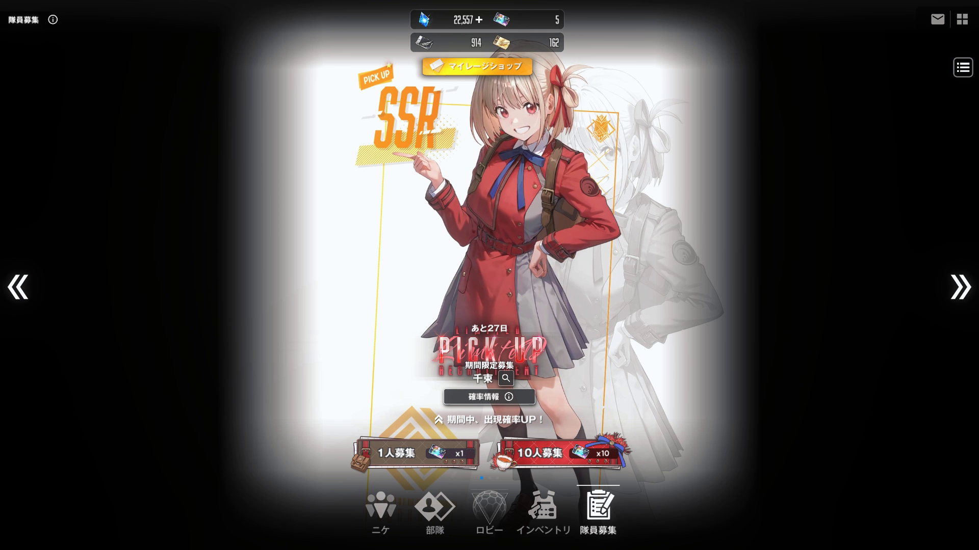 「千束」は期間限定枠の「ピックアップ募集」で、見た瞬間ここかwって言うのが分かるでしょう。