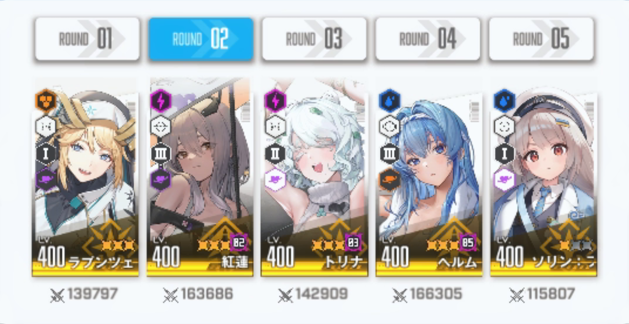 意外だったのは今まで全然勝てなかった「第5部隊」「紅蓮編成」が全勝している事。