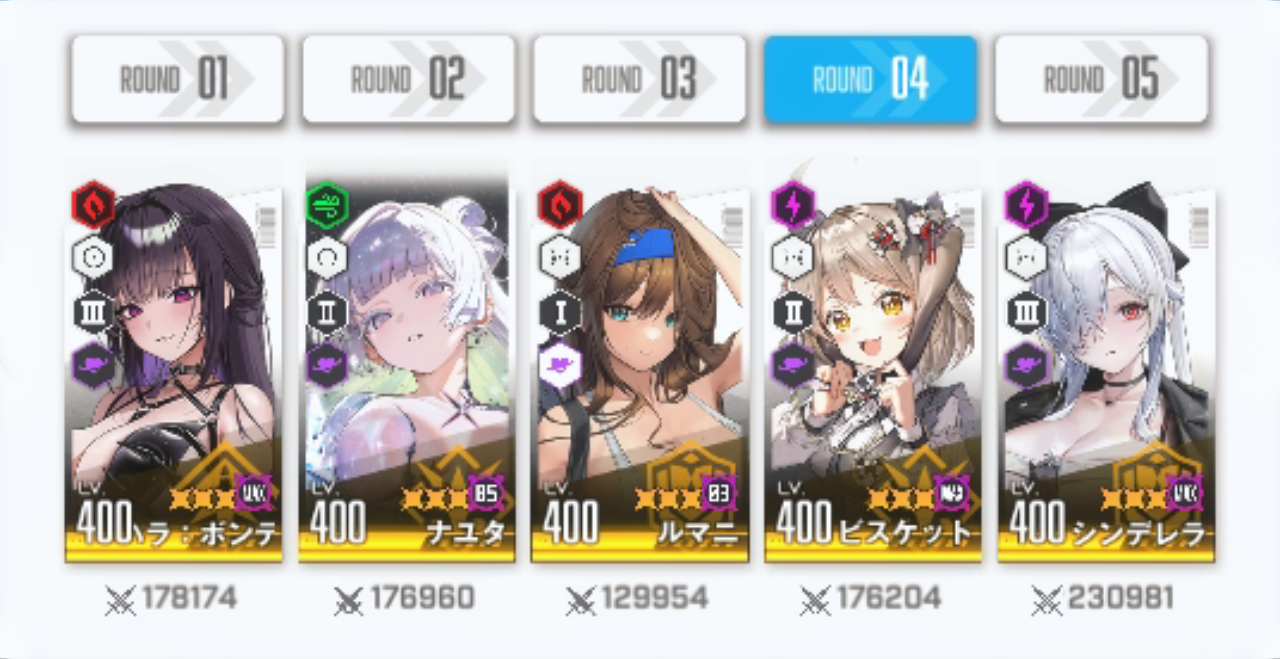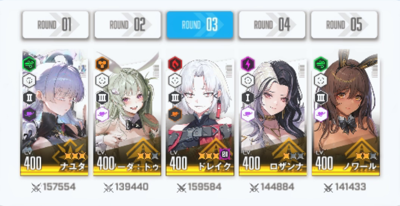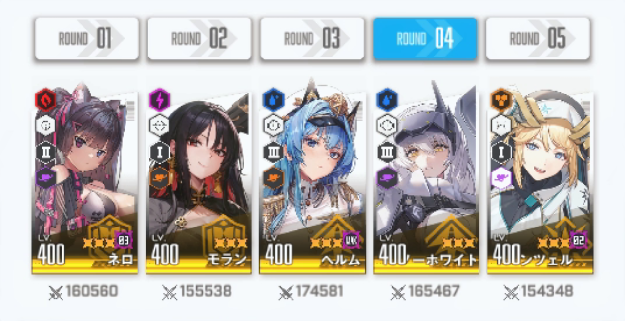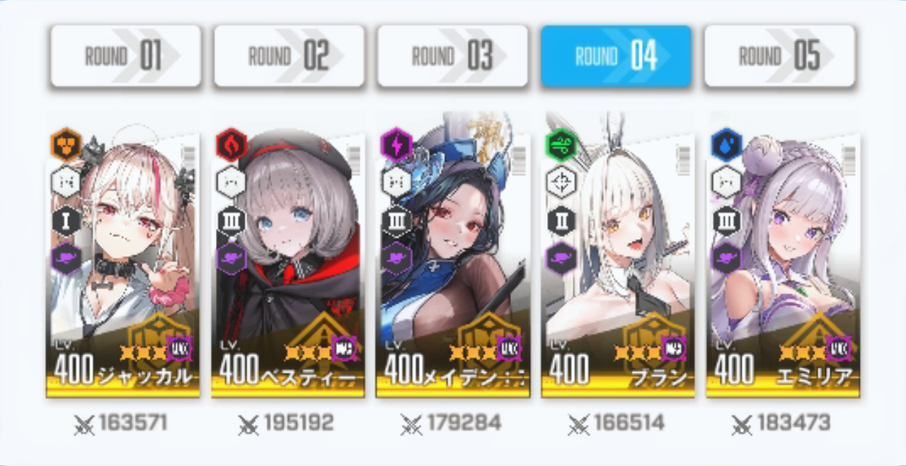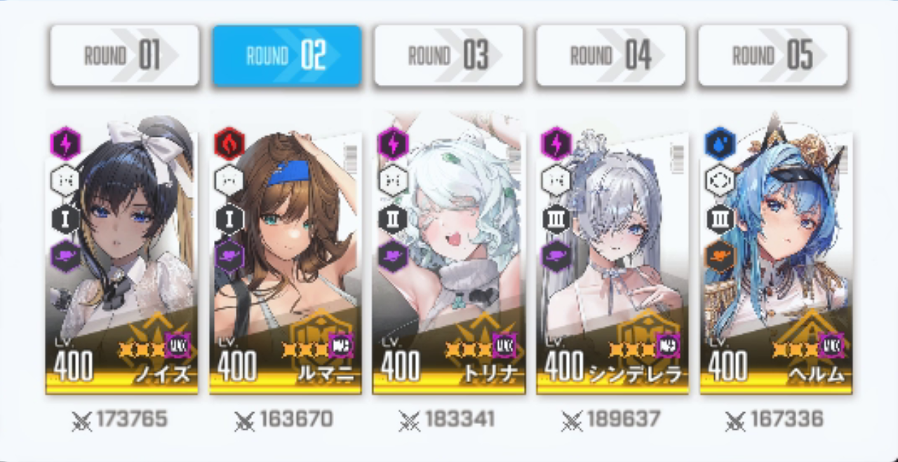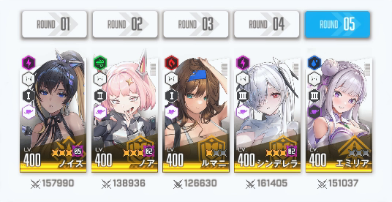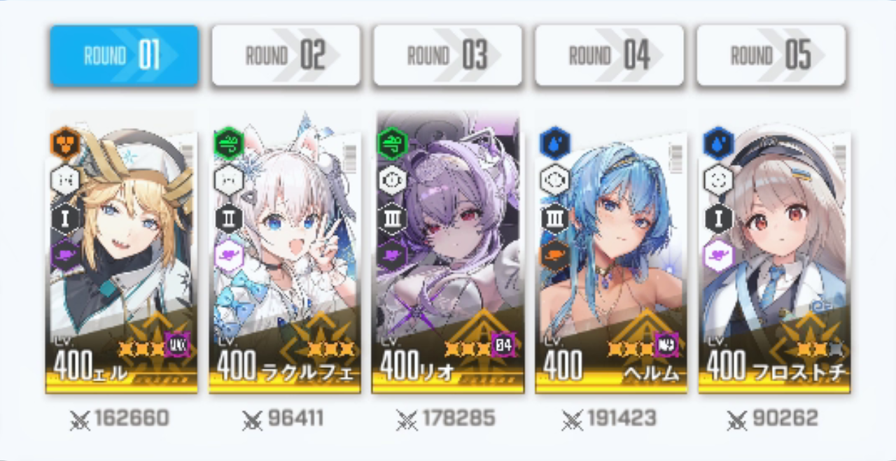 まずは初戦の相手「アインさん」の編成を見てみましょう。