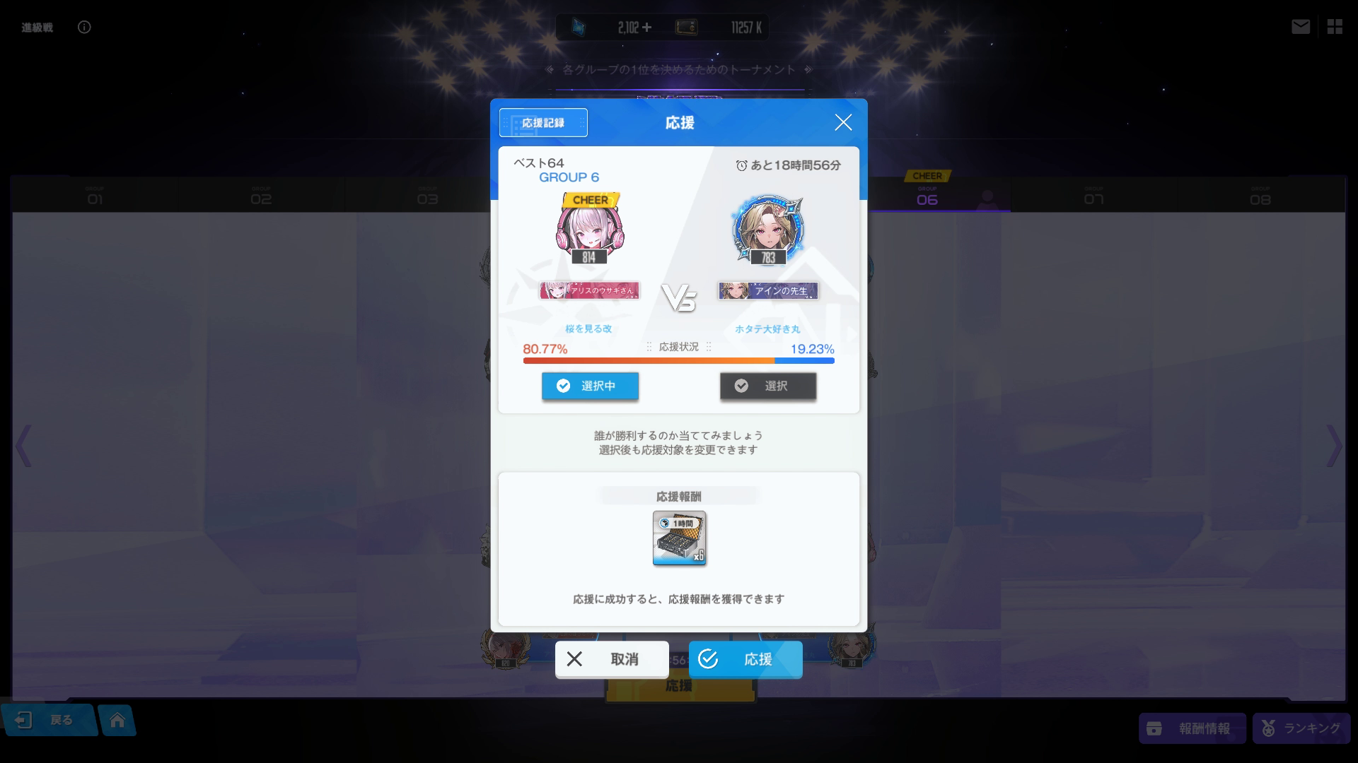さて・・結果は明日の夜中に分かりますが、応援結果に関しては珍しく私の方が有利みたいです。