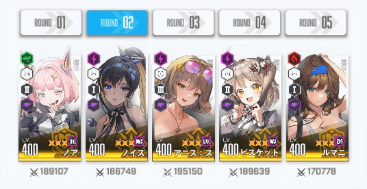 「第4部隊」はまぁ、こんなものでしょう。割と最近になって「マナ」の「凸」が急常勝したので一生懸命育てましたが、今は「キリ」を使っている人の方が多いですね。次回は一度「キリ」に戻してみるつもりです。